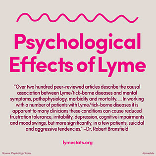 “In considering the behavioral symptoms, these patients can become suddenly suicidal with completed suicides attributed to Lyme disease. Homicidal ideation, urges, and behavior occur in some of these patients. Some adult patients describe struggling to not act on these urges. When these patients act on a homicidal urge, more commonly it is a child becoming assaultive to a sibling. Dissociative episodes sometimes occur with these patients occasionally accompanied with aggressive behavior and loss of memory.