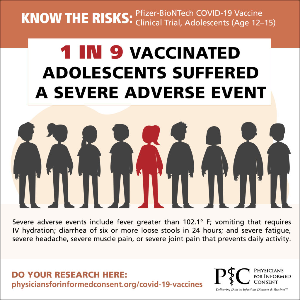 Educational document highlights Pfizer clinical trial finding that 1 in 9 vaccinated adolescents suffered a severe adverse event