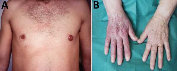 - IMO the hands/skin pain and rawness is an indicator that should point doctors to another strain – a European strain that causes skin manifestations (not something I see much of here in WI but still exists). This picture is from a year old study and even shows the hand involvement.