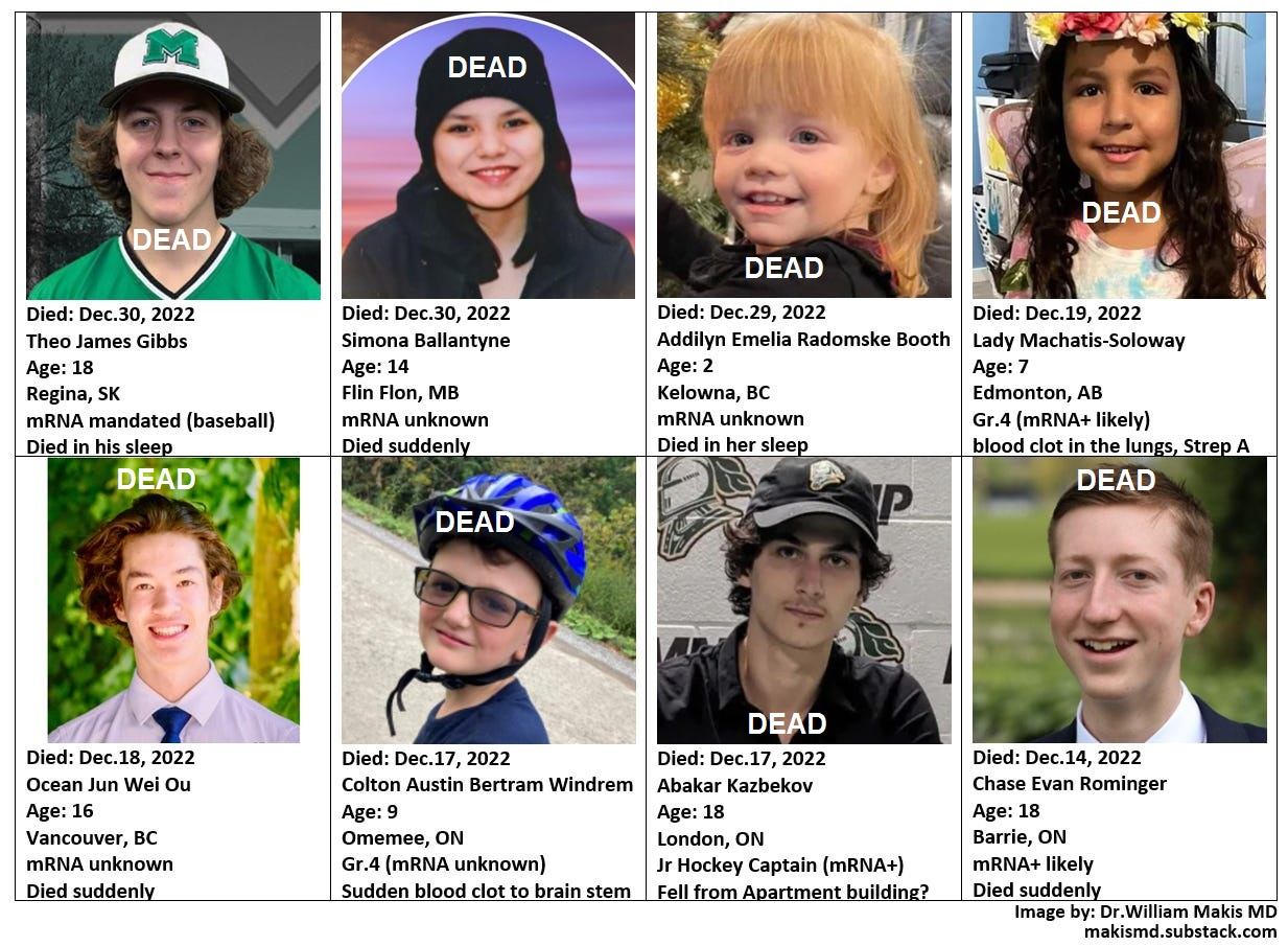Sudden deaths of Canadian children have skyrocketed in recent months. I have tracked these deaths since November 2022, when healthy Canadian children began to die from influenza, strep, myocarditis, blood clots, strokes, sudden deaths while playing sports and sudden deaths in their sleep (!)