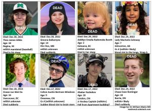 The COVID-19 mRNA vaccine status in many of these tragic cases is unknown. Some of these children were mandated to have COVID-19 mRNA vaccines to play sports or attend University or College. While it is unknown in how many of these cases mRNA toxicity played a major factor, even ONE child death due to mRNA vaccine damage and injury, is one death too many. (See link for article)
