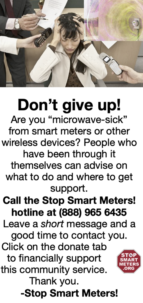 This website has posted information before on the dangers of Smart Meters and the fact Lyme/MSIDS and other chronically ill patients are already fighting a health battle and don’t need to be bombarded with RF radiation by a device that is known even by the corrupt WHO as a possible Class 2B carcinogen.