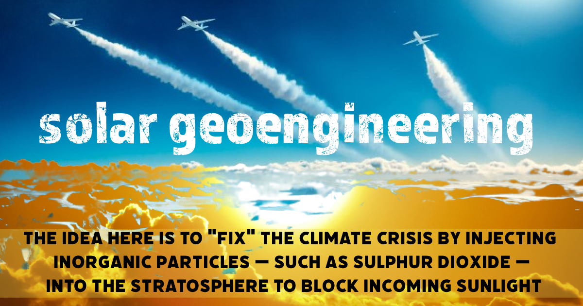 - Funding from the fossil fuel industry, which would like to use solar geoengineering as an excuse to continue with oil, gas and coal burning.