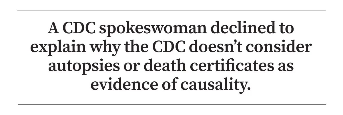 In other cases, the CDC workers found that deaths met the agency’s definition for myocarditis, that the patients started showing symptoms within 42 days of a vaccine dose, and that the deceased displayed no virus-related symptoms. Officials say that after 42 days, a possible link between the vaccine and symptoms becomes tenuous, and they list post-vaccination deaths as unrelated if they can find any possible alternative causes.