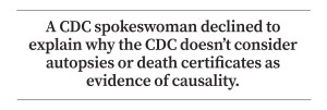 Myocarditis was also described as being caused by vaccination in a subset of the deaths.